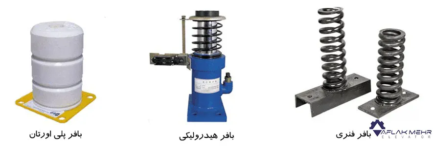 همانطور که دررابطه با بافر کابین گفتیم ، بافر وزنه هم وجود دارد تا زمانی که اشتباها کابین با سرعت نامی اینبار به سمت بالا درحرکت است و بالاترین ایستگاه را رد می کند ، قاب وزنه روی بافر بشیند و با برداشته شدن بار از روی فلکه موتور عملا کابین دیگر به سمت بالا حرکت نخواهد کرد (سیم بکسل ها به دلیل نبود نیرو و نتیجتا اصطکاک کافی روی فلکه کشش سر می خورند). البته لازم به ذکر است خود بافرها نیز سوئیچ هایی دارند که زمان برخود به موتور فرمان توقف می دهند.