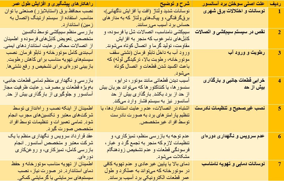 برای اینکه بتوانیم به طور موثری از سوختن برد آسانسور جلوگیری کنیم، ابتدا باید علل ریشه ای این مشکل را شناسایی نماییم. در اینجا، هفت دلیل کلیدی که غالباً منجر به آسیب دیدن و سوختن برد آسانسور میشوند، به تفصیل توضیح داده شدهاند: