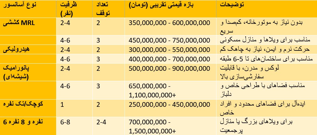 « همچنین بخوانید: قیمت آسانسور ۴ نفره برای ۳ طبقه »