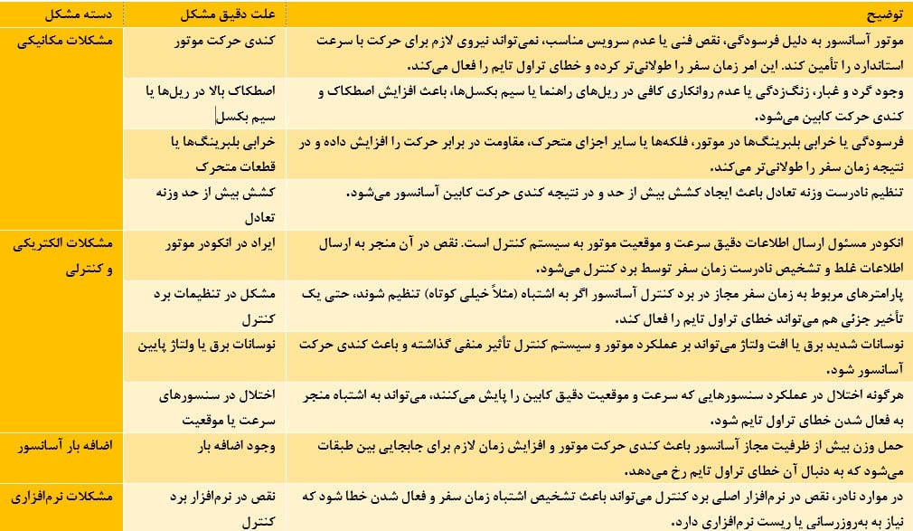 مشکلات مکانیکی آسانسور و تأثیر آن بر خطای تراول تایم